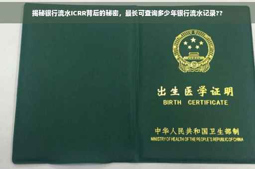 摘要:银行流水ICRR揭示银行交易记录的细节与真相。银行流水可查询的时间长度因银行和地区而异,一般可查询数年至数十年的交易记录。了解银行流水的查询范围、内容和真实性对于个人财务管理和企业决策具有重要意义。通过银行流水,可以洞察个人或企业的收支状况、经济活动及信用记录等秘密。