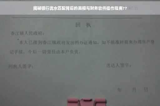 摘要:本文将揭示银行流水匹配背后的真相,并为您提供操作指南。通过匹配银行流水与财务软件,您将能够更清晰地掌握个人或企业的财务状况。本文将介绍如何进行银行流水匹配,包括步骤、注意事项和常见问题解答,帮助您轻松掌握这一技能。阅读本文,您将了解到银行流水匹配的重要性和实际操作方法,从而更好地管理自己的财务。