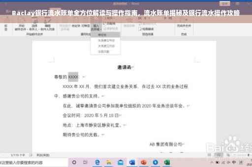 摘要:本文将为你揭秘Baclay银行的流水账单,提供全方位的解读和操作指南。通过本文,你将了解如何获取银行流水账单,如何解读其中的各项数据,以及如何正确操作银行流水账单。阅读本文,将帮助你更好地管理个人财务和银行业务。