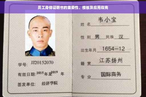 在当今社会,随着经济的发展和社会的进步,员工身体健康问题越来越受到企业和个人的关注,在此背景下,员工身体证明书作为一种重要的健康证明文件,其意义和应用价值逐渐凸显,本文将详细介绍员工身体证明书的重要性、实际应用场景、办理流程以及注意事项,以帮助读者更好地了解和运用这一文件。