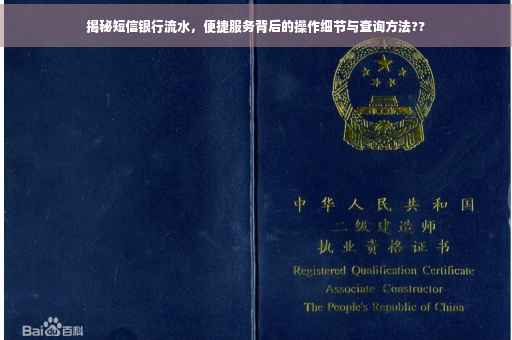 摘要:本文将为您揭秘短信银行流水的便捷服务背后的细节,让您了解如何查询短信银行流水。通过简单的步骤,您将能够轻松掌握自己的账户动态,确保资金安全。本文还将提供相关的注意事项和建议,以帮助您更好地利用短信银行流水服务。