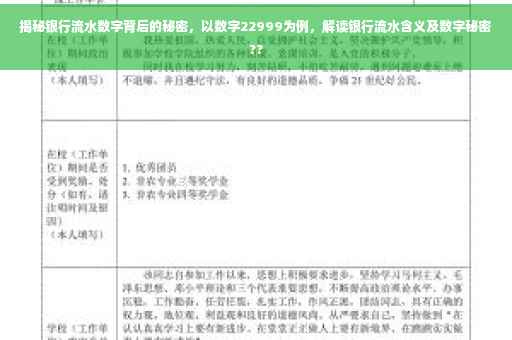 随着金融市场的快速发展,银行业务已成为人们日常生活中不可或缺的一部分,银行流水作为银行业务的重要组成部分,反映了个人或企业的经济活动情况,本文将围绕银行流水进行深入探讨,以数字“22999”为例,揭示其背后可能隐藏的故事。
