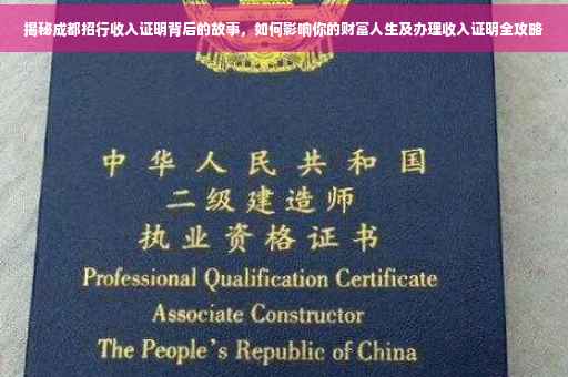 摘要:成都招行收入证明是一份重要的财务证明文件,其背后涉及到个人财富和信用等方面。一份有效的收入证明可以为个人带来诸多机会和便利,如贷款、信用卡申请等。本文将介绍如何开具成都招行收入证明,并探讨其如何影响个人财富人生。通过了解相关流程和要求,个人可以更好地规划自己的财务未来。