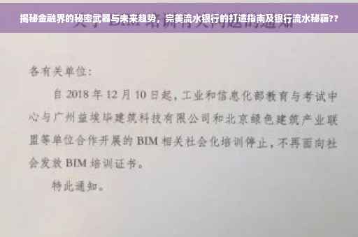 摘要:完美流水银行,探索金融界的秘密武器和未来趋势。本文将介绍如何制作完美的银行流水,包括掌握金融知识、合理规划资金流动、利用科技手段提升服务质量等方面。随着金融行业的不断发展,未来银行流水将更加注重智能化、便捷化和个性化,为客户提供更加优质的服务体验。本文将为您揭示未来银行流水的趋势和发展方向。