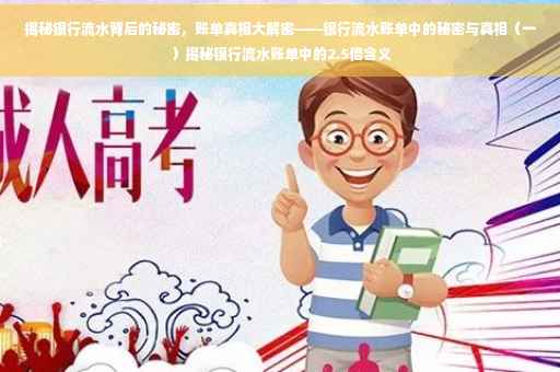 摘要:本文将揭示银行流水账单背后的秘密,让读者深入了解银行流水账单中的真相。将重点解读银行流水账单中的“银行流水2.5倍”的含义,解释其背后的原因和可能的影响。通过本文,读者可以更好地理解自己的财务状况,更好地管理个人财务计划。