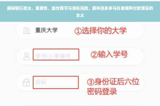 摘要:银行流水的重要性日益凸显,它不仅是个人财务记录的关键部分,也是评估个人信用和财务状况的重要依据。操作银行流水需注意细节,包括确保信息真实、完整,避免泄露个人信息等。也存在潜在风险,如诈骗和隐私泄露等。关于拼多多和抖音租购付款,这是一种通过银行流水进行支付的方式,用户需注意选择正规渠道并谨慎操作以避免风险。