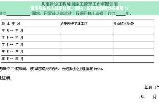 随着市场经济的发展,越来越多的投资者和企业家关注董事股东的收入证明问题,董事股东作为企业的重要决策者和管理者,其收入水平不仅反映了企业的经营状况,也体现了公司治理结构的重要性,本文将详细介绍董事股东收入证明的结构、影响因素及未来趋势,帮助读者更好地了解这一领域。