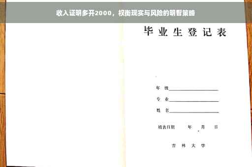 在当今社会,收入证明已成为评估个人信用状况的重要指标之一,无论是在求职、申请贷款还是其他重要场合,一份有力的收入证明往往能为我们带来诸多便利,有时我们可能会面临收入证明不足以满足特定需求的困境,这时,一些人可能会考虑通过提高收入证明数额的方式来应对困境,本文将以“收入证明多开2000”为主题,深入探讨其中的现实状况与潜在风险,并给出相应的建议。