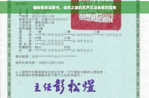 随着人们对自然环境的日益关注,植物在我们的生活中扮演着越来越重要的角色,它们不仅为我们提供清新的空气、美丽的景观,还在许多方面为人类带来实实在在的利益,为了更好地了解植物的价值与重要性,我们特此推出植物简易证明书,为您呈现植物的独特魅力。