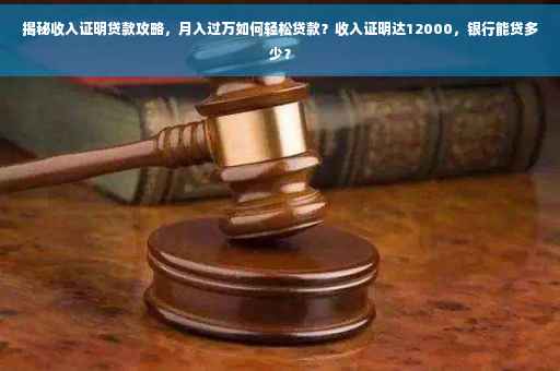 摘要:揭秘收入证明贷款,月入过万也能轻松贷款。凭借收入证明,可向银行申请相应贷款额度。若收入证明显示月入12000元,银行将根据收入情况及其他因素评估贷款额度。想要了解具体能贷多少,建议向银行咨询,以获取更准确的贷款信息。