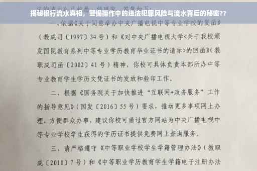 随着银行业务的日益繁忙,银行流水作为个人和企业资金流动的关键记录,逐渐受到社会各界的密切关注,本文旨在深入探讨银行流水的背后真相,揭示其中潜藏的风险,并提醒广大民众警惕与之相关的违法犯罪问题。