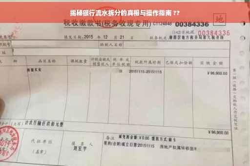 摘要:本文揭示了银行流水拆分的真相,阐述了银行流水拆分的操作方式。通过深入了解,银行流水拆分是指将一段时间内的银行交易记录进行分解,以便更好地分析资金流动情况。操作过程需要专业技巧和知识,以确保拆分的准确性和合法性。本文旨在帮助读者了解银行流水拆分的真相,并提醒大家在操作时要谨慎,遵守相关法律法规。