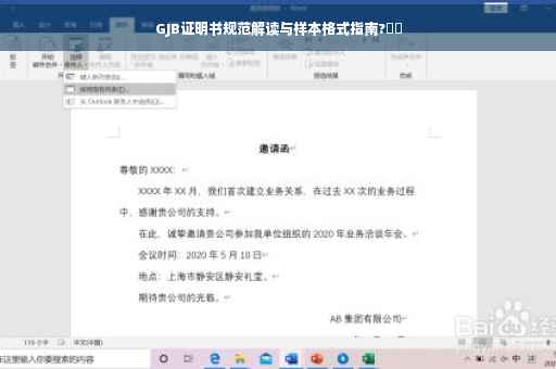 摘要:本文全面解读了GJB证明书规范,详细介绍了证明书样本格式。通过解析样本格式,帮助读者了解证明书的结构和内容要求,从而更好地遵循规范进行编制。文章涵盖了证明书的主要组成部分,包括证书编号、颁发机构、持有人信息、证明事项、证明期限等关键要素。强调了遵循GJB规范的重要性,以确保证明书的权威性和有效性。