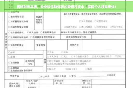 摘要:通过特定的软件,可以方便地查询银行流水,揭示真实的财务状况,进而保障个人权益。这款软件能够帮助用户轻松管理个人财务,随时掌握资金流向,有效防止不必要的财务风险。查询银行流水是维护个人财务安全的重要步骤,这款软件为用户提供了一个简单、快捷的途径,让财务真相一目了然。