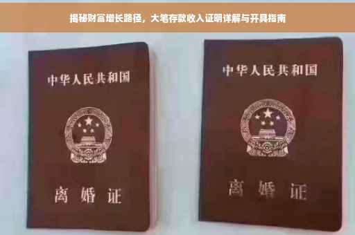 实现大笔存款收入需要我们综合多方面的因素,从提高收入、制定储蓄策略、投资等方面入手,通过不断学习和努力,我们可以逐步积累财富,走向财务自由,希望本文能为您揭示财富增长的秘密路径,助您获得大笔存款收入证明,在实际操作过程中,还需根据个人的实际情况进行调整和优化。
