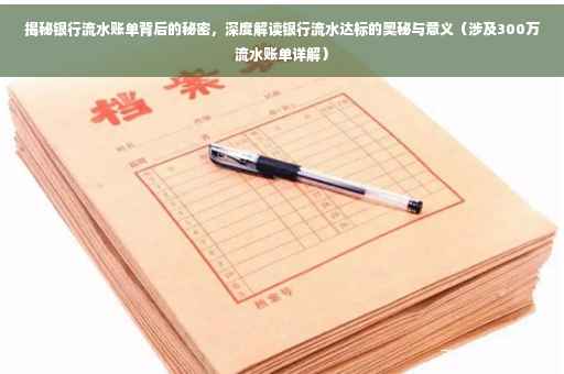 摘要:本文将揭示银行流水账单背后的秘密,深度解读银行流水账单的奥秘。通过解析银行流水账单中的各项数据,帮助读者了解银行流水账单的重要性及其背后的含义。本文将详细解读银行流水账单中达到300万的情况,让读者了解这一数字背后所代表的经济活动和资金流向。通过本文的阅读,读者可以更好地理解银行流水账单,从而更好地管理自己的财务。,,这段摘要的字数在规定的范围内,希望您满意。