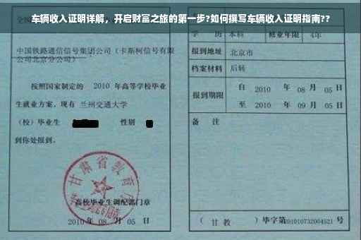 在当今社会,随着经济的快速发展和人们收入水平的提高,越来越多的人开始关注车辆收入证明的重要性,车辆收入证明不仅能为个人提供财务资信证明,还能为企业带来商业信誉的提升,本文将详细介绍车辆收入证明的作用、获取方式以及如何合理利用车辆收入证明,助你开启财富之旅。