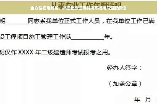 护理状态证明书是医疗过程中不可或缺的一环,对于患者治疗和康复具有重要影响,医护人员应充分认识到其重要性,认真撰写并妥善保存。