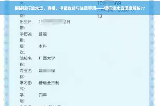 摘要:银行流水贷是一种以银行流水记录作为贷款依据的贷款方式。本文揭示了银行流水贷的真相,详细阐述了申请攻略和注意事项。通过本文,读者可以了解银行流水贷的具体含义、申请流程和需要注意的关键点,帮助借款人更好地理解和选择适合自己的贷款方式。