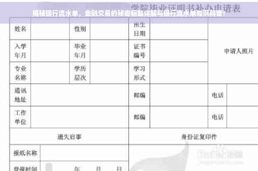 随着现代社会金融活动的日益频繁,银行流水单在我们的日常生活中扮演着越来越重要的角色,本文旨在深入解析银行流水单的各个方面,帮助个人、企业和投资者更好地理解和应用银行流水单。
