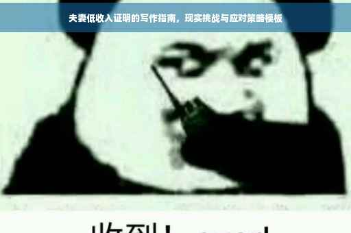 摘要:本文将介绍夫妻低收入证明的写作要点及现实挑战。面对经济困境,低收入家庭需正确应对,确保证明内容真实有效。本文将提供模板,指导读者如何撰写低收入证明,并探讨应对策略,如寻求政府援助、提升技能以增加收入等。本文旨在帮助低收入家庭应对现实挑战,实现经济状况的改善。