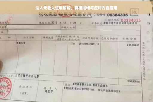 摘要:针对法人无收入证明的问题,本文深入解析背后的真相,探讨其产生的原因和应对之策。针对如何开具法人无收入证明,提供具体的解决方案和建议。帮助解决因缺乏收入证明而带来的困扰,确保法人的合法权益得到保障。,,注:由于缺少具体内容,以上摘要较为简短和概括性较强,如需更详细的摘要,请提供更多背景信息或详细内容。