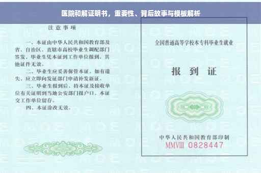 摘要:医院和解证明书是一份重要的文件,用于证明医患之间的纠纷已经得到妥善解决。这份证明书的背后隐藏着许多故事,包括患者与医院之间的沟通和协商,以及双方为了达成和解所做的努力。通过医院和解证明书模板,可以更加规范地表述和解内容,确保双方权益得到保障。这份证明书的重要性不容忽视,对于医患双方都具有重要意义。
