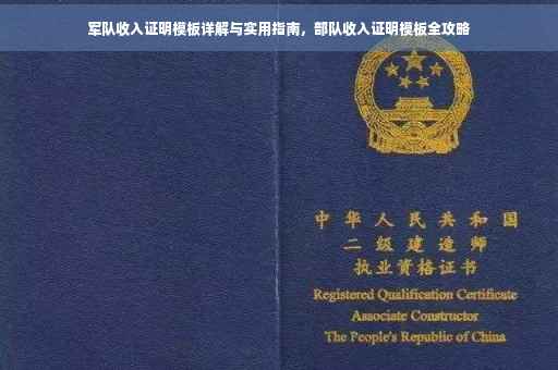摘要:本文详细介绍了军队收入证明模板的内容和使用指南。通过本文,读者可以了解到军队收入证明模板的基本结构、填写要点以及注意事项。本文还提供了使用指南,帮助读者更好地理解和使用军队收入证明模板。无论是需要证明个人收入还是进行其他相关事务,本文都能为读者提供有价值的参考信息。