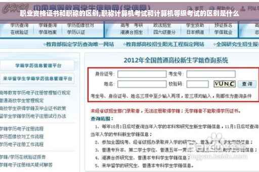 计算机等级考试一般是高校学生考的,主要是证明计算机能力,分为一级到四级,考的课程各不相同,一级主要是考计算机应用基础知识,二级就有分类比如C,VFP等,三级如数据库\网络等职称计算机考试是在职人员评聘技术资格等级用的,分别根据要评的职称分为初级\中级\高级职称计算机考试,考的也是以操作系统的应用及办公自动化软件应用数据库管理工具应用等基础知识前者是证明计算机能力,后者是评职称必须的条件