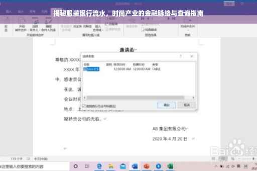 服装银行流水,顾名思义,指的是服装企业在银行往来账目的流动情况,这涵盖了服装企业资金的流入与流出,包括销售收入、采购支出、生产投资等多个方面,随着时尚产业的不断升级,服装银行流水已经成为评估企业运营状况、财务状况及偿债能力的重要指标之一。