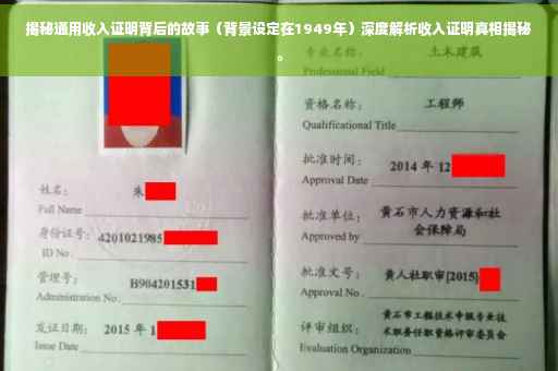 摘要:本文将带你揭秘历史,探寻通用收入证明背后的故事。背景设定在1949年,那个特殊的时代,收入证明对于人们的生活起到了至关重要的作用。本文将揭示收入证明的制作背景、使用目的以及背后的社会现象,让读者更深入地了解那个时代的风貌。通过本文,你将了解到通用收入证明的重要性以及其背后的故事。
