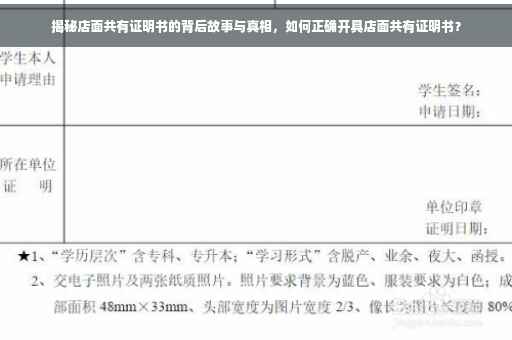 摘要:本文将介绍店面共有证明书的开具过程,同时揭示其背后可能存在的故事和真相。通过本文,您将了解到如何合法合规地获取店面共有证明书,包括需要提供哪些材料、遵循哪些流程等。如果您想了解如何合法拥有店面产权,本文将是您的参考指南。