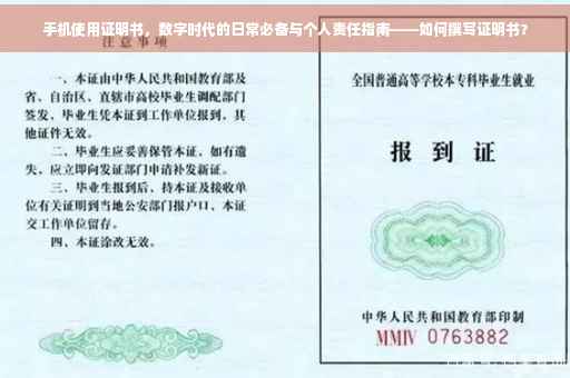 摘要:手机使用证明书是数字时代的必备工具,它证明了个人对手机使用的责任与义务。随着智能手机的普及,人们越来越依赖手机进行日常生活和工作交流。撰写手机使用证明书时,应强调个人责任,包括合理使用手机、保护个人信息和遵守相关法律法规等方面。这份证明书不仅是对个人行为的承诺,也是对社会的一种承诺,促进数字时代的健康发展。