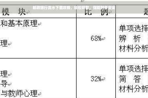 随着互联网的普及和数字化金融的发展,越来越多的人开始使用网上银行服务,邮政银行作为国内知名的金融机构,为广大用户提供便捷、安全的金融服务,在日常理财过程中,我们有时需要下载银行流水作为凭证,比如申请贷款、报税等,本文将详细介绍邮政银行流水下载的方法与注意事项,帮助大家轻松获取银行流水,保障个人财务安全。