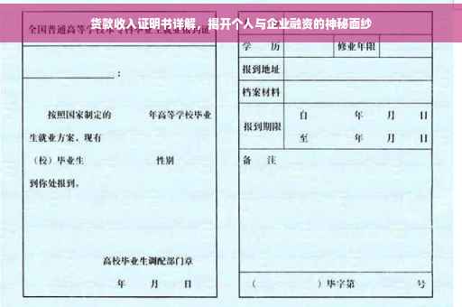 随着经济的发展和金融市场的繁荣,越来越多的人和企业选择通过融资的方式实现自身的发展目标,在这个过程中,货款收入证明书作为融资过程中的重要环节,扮演着至关重要的角色,本文将详细介绍货款收入证明书的作用、内容要点、注意事项以及常见问题解答,帮助个人和企业更好地了解货款收入证明书的相关知识,以便更顺利地完成融资过程。