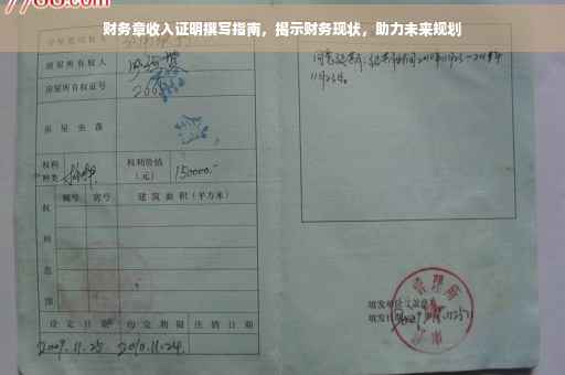 摘要:财务章收入证明是展示个人财务现状的重要文件,它能够帮助你为未来规划打下坚实的基础。撰写财务章收入证明时,应清晰明了地列出收入状况、收入来源及财务状况,确保内容真实可靠。通过这份证明,你可以了解自己的经济能力,为未来做出明智的财务决策提供参考。正确编写财务章收入证明,有助于你更好地管理个人财务,实现财务目标。