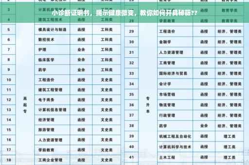 在日常的生活中,我们时常会遇到身体不适的情况,有时候这些小小的症状可能是身体某些潜在问题的预兆,本文将为您解读一份小诊断证明书的重要性,帮助您了解如何正确识别身体的不适症状,以及如何通过科学的方法预防和治疗潜在的健康问题,让我们一起揭开健康微变的秘密吧!