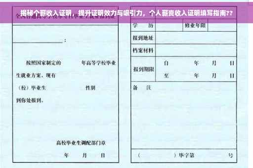摘要:本文将为你揭秘如何提升个人薪资收入证明的效力与吸引力。通过深入了解收入证明的结构和内容,掌握填写技巧,让你的收入证明更具说服力。本文还将分享一些实用的建议,帮助你在求职、贷款等方面更好地展现自身经济实力。阅读本文,让你在薪资收入证明方面取得满分表现。