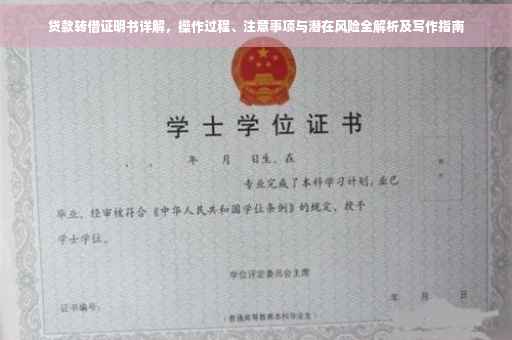 摘要:本文介绍了贷款转借证明书的相关内容,包括操作过程、注意事项和潜在风险。通过本文,读者可以了解到贷款转借证明书的撰写方式,以及在操作过程中需要注意的问题和可能出现的风险。文章旨在帮助读者更好地理解和使用贷款转借证明书,确保贷款转借过程的顺利进行。