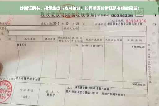 摘要:本文介绍了诊断证明书在揭示绝症方面的重要性,以及应对绝症的方法和步骤。内容包括如何撰写诊断证明书,以及面对绝症时应该如何寻求医疗帮助、采取何种态度等。文章旨在帮助患者及其家属更好地理解和应对绝症,提供相关的指导和建议。