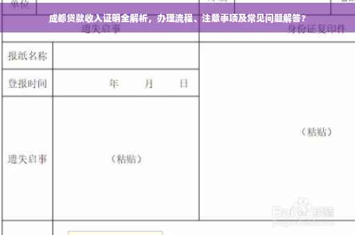 随着金融市场的不断发展,贷款已成为人们解决资金周转问题的重要途径之一,对于在成都地区工作或生活的朋友们来说,办理贷款时,收入证明是一个必不可少的环节,本文将详细介绍成都贷款收入证明的相关知识,包括办理流程、注意事项以及常见问题解答,帮助大家更好地了解和应对贷款收入证明相关事宜。