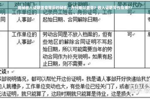 摘要:本文将揭示收入证明盖章背后的真相,探讨为何有时无法顺利获得盖章。针对无法盖章的情况,提供应对方法,包括如何撰写没有盖章的收入证明。文章旨在帮助读者了解相关流程,确保个人权益得到保障。