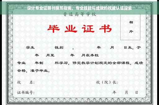 摘要:设计专业证明书是对个人专业技能与成就的权威证明,撰写时需清晰简洁。内容包括:证书颁发机构、设计者姓名、设计专业领域、具体成就描述,如设计作品、奖项等。需强调设计者的专业技能,如创新思维、审美观念、技术实现能力等。结尾部分表达对该设计者专业能力的认可,并注明颁发日期和证书编号。设计专业证明书的撰写应客观、准确,体现设计者的真实水平。