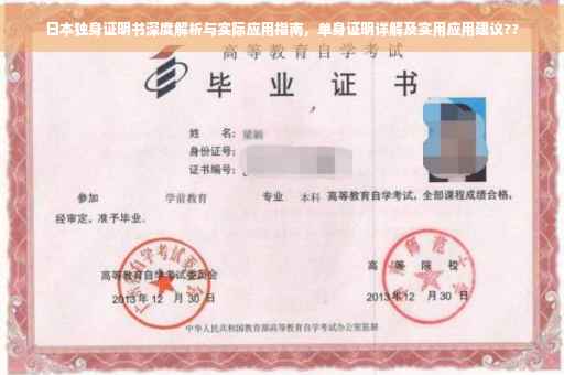 摘要:本文将深度解析日本独身证明书,介绍其定义、用途及申请流程。通过本文,读者将了解如何正确获取和使用该证明书,以及在哪些场合需要提供日本单身证明。文章将简洁明了地阐述独身证明书的实际应用,帮助读者更好地理解和运用这一重要文件。