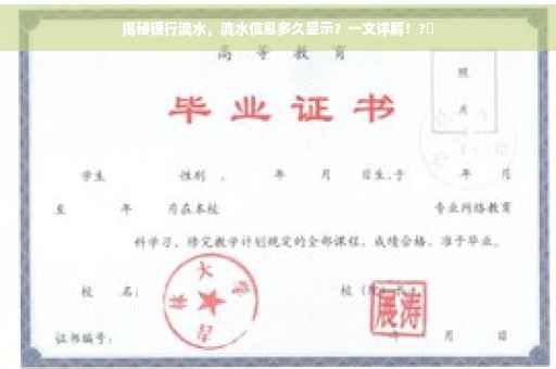 摘要:本文将为你揭示银行流水的显示时间及相关信息。想知道多久显示银行流水吗?一文解答你的疑惑。从银行流水的基本概念到显示时间,让你全面了解银行流水信息的显示周期。阅读本文,你将了解到银行流水一般在多久内显示流水信息,以便更好地管理你的财务。