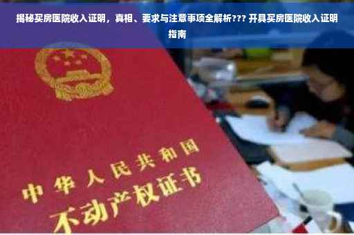 随着房价的不断上涨,购房成为了许多人生活中的重要事件,在购房过程中,收入证明是不可或缺的一环,特别是在贷款购房时,银行或其他金融机构需要核实借款人的收入情况,以确保其具备偿还贷款的能力,本文将围绕买房医院收入证明这一主题,揭示其中的真相、要求及注意事项,帮助读者顺利完成购房手续。
