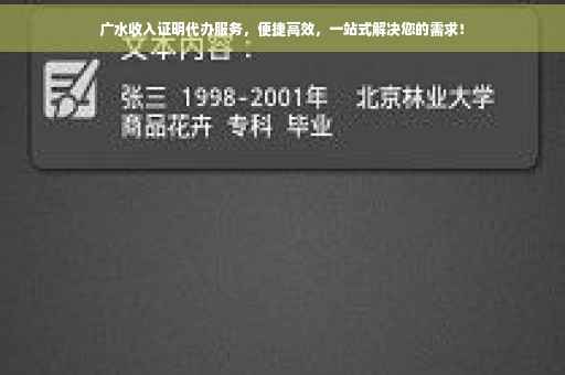 广水市作为一个经济发达的地区,代办收入证明行业逐渐兴起,代办收入证明是指由专业机构或个人代替申请人办理收入证明的一种服务,在广水市,代办收入证明服务已经得到了广泛的应用和认可,代办机构通过简化流程、提高效率,为申请人提供了更加便捷、高效的办理方式。