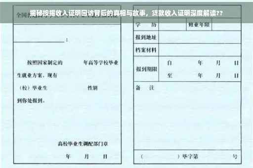 摘要:本文将探讨按揭收入证明的回访过程,揭示背后不为人知的故事与真相。通过深入了解贷款收入证明的重要性,我们将一起探讨为何这一环节对于贷款申请至关重要。本文还将分析按揭收入证明回访过程中可能存在的挑战和问题,帮助读者更好地了解这一领域的真实情况。