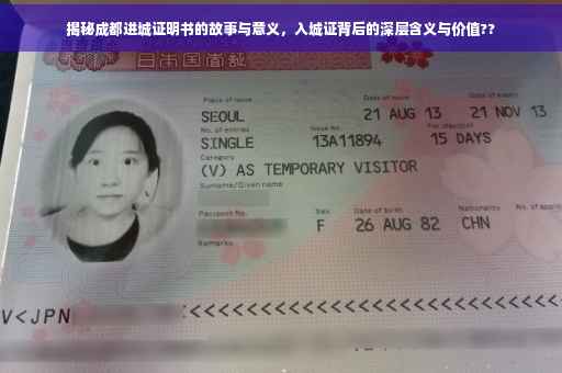 摘要:成都进城证明书是一种重要的证件,背后蕴含着深厚的故事和意义。这一证件对于成都市的发展和城市化进程起到了关键作用。通过入城证,人们得以顺利进入成都市区,享受城市资源和发展机遇。本文将为您揭示成都进城证明书的背后故事和意义,带您了解这一证件的重要性。