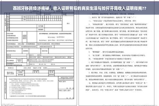 随着全球化的推进,越来越多的人选择移民到西班牙寻求更好的生活和发展机会,移民的生活并非都是光鲜亮丽的,背后隐藏着许多艰辛和真实的经济状况,本文将深入探讨西班牙移民的收入证明问题,揭示移民在西班牙的真实经济面貌。